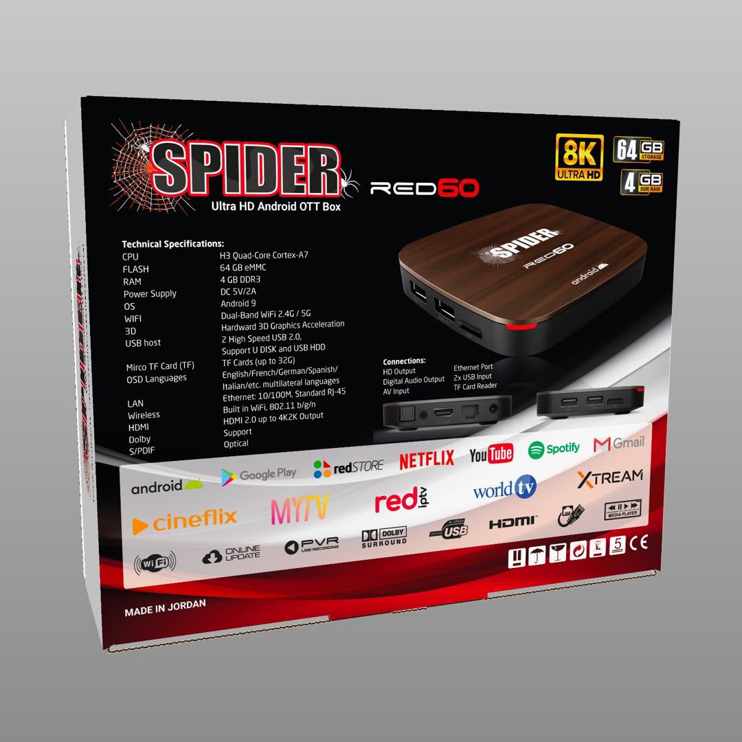 Spider Receiver RED60 8K 5G Android LAN + WIFI 5G RAM 4GB ROM 64GB